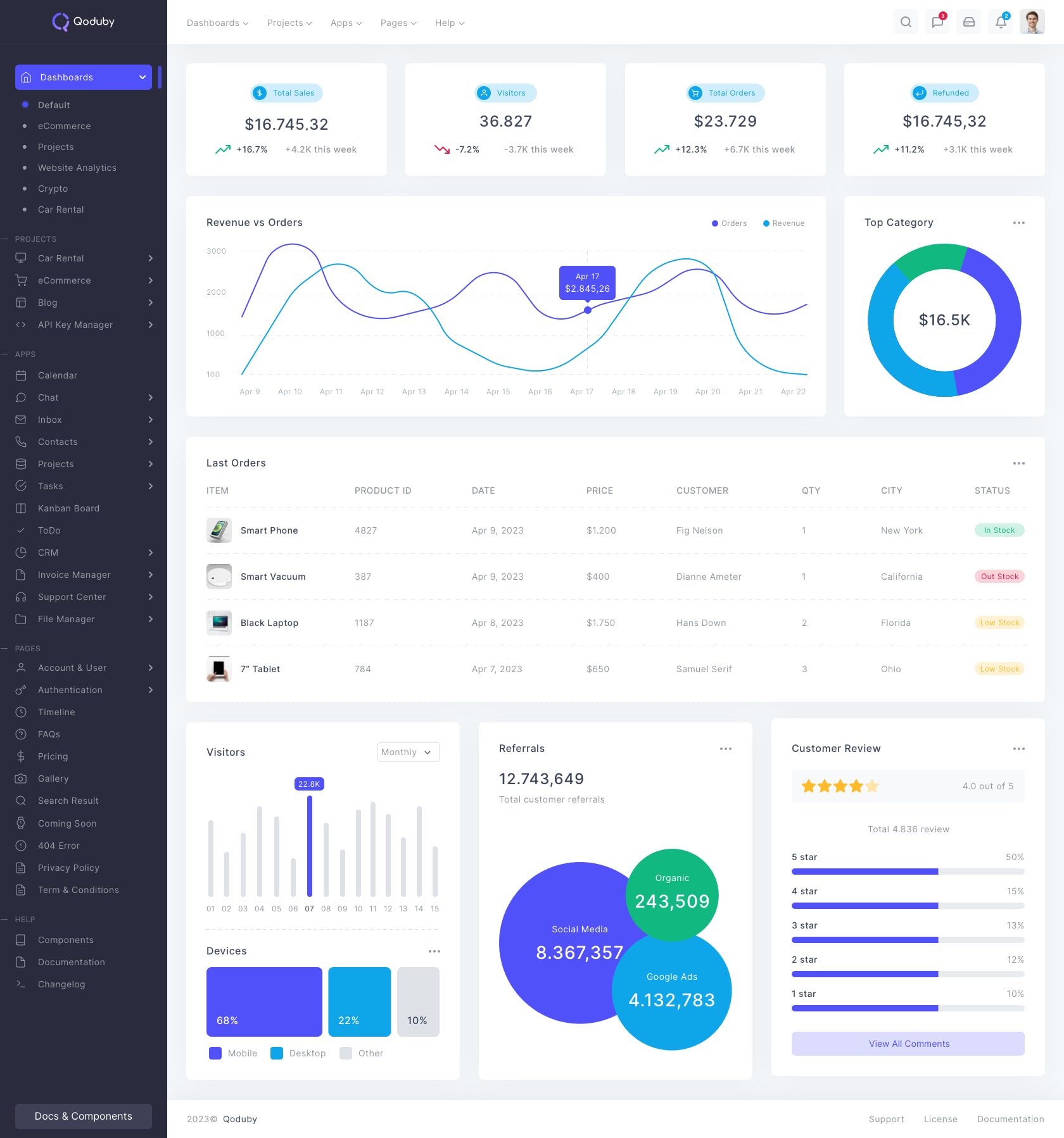 Gain valuable insights and make data-driven decisions with Qoduby Admin Template, an organized and insightful theme designed to make data analysis a breeze.